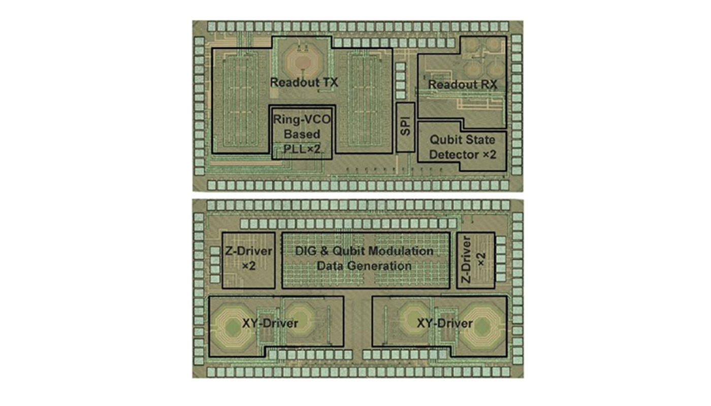 Our group focuses on developing cryo-CMOS circuits for the control and readout of superconducting transmon processors. The control chip includes dedicated XY and Z driver modules for qubits, with the XY driver capable of controlling multiple qubits simultaneously through frequency division multiplexing. The readout chip supports high-fidelity single-shot measurement of more than four qubits.